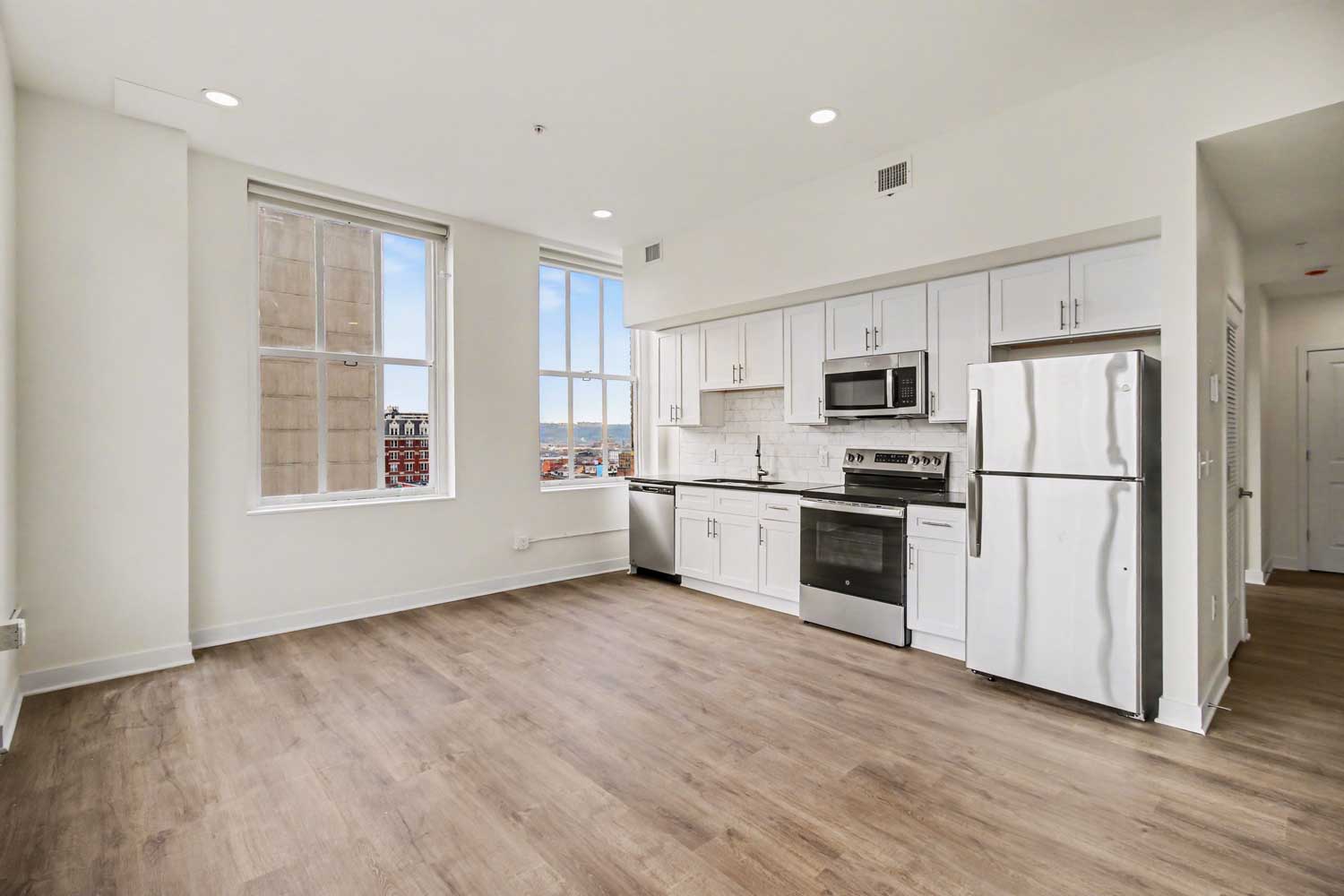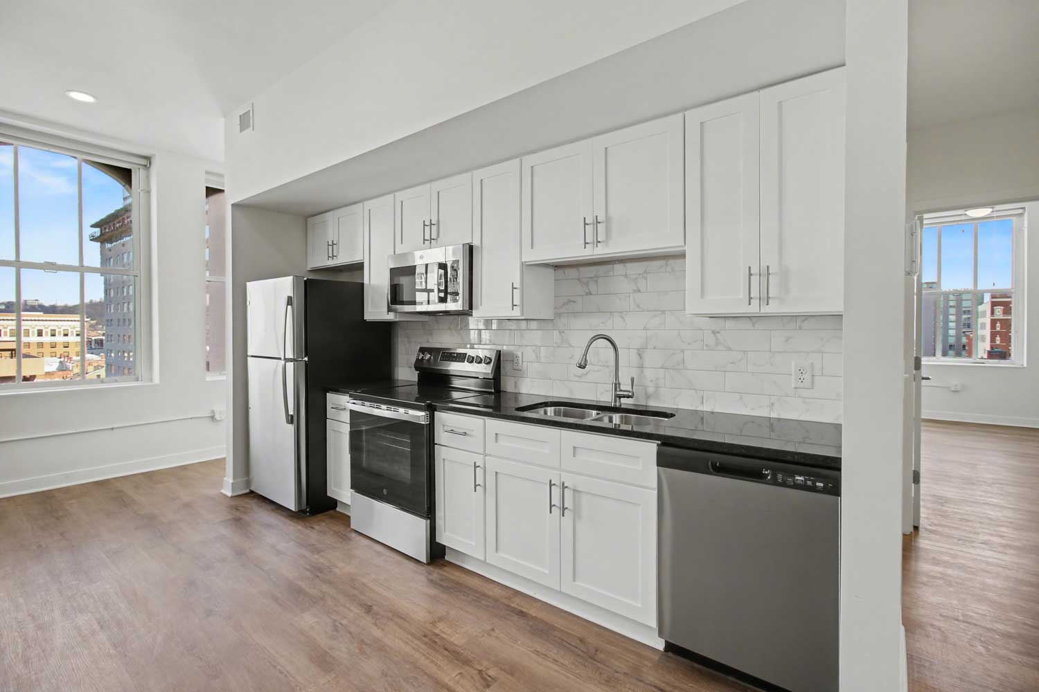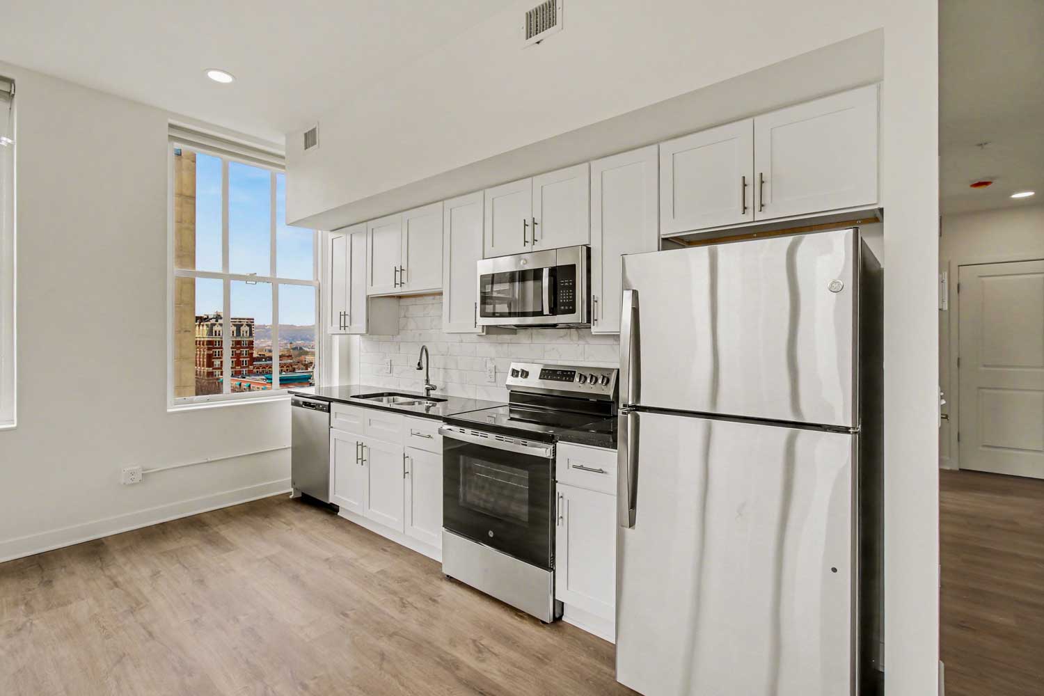 19 on The Park offers upscale apartments for rent in Cincinnati, Ohio, blending historic architecture with modern living. Each thoughtfully designed home features stainless steel appliances, black granite countertops, large windows that frame lovely outdoor views, and vaulted ceilings in select units. Beyond delightful living spaces, residents can take advantage of on-site management, a well-equipped fitness center, bike storage, and a welcoming community room. Perfectly situated beside Piatt Park, 19 on The Park places you steps from Fountain Square and Downtown's finest dining, shopping, and entertainment.